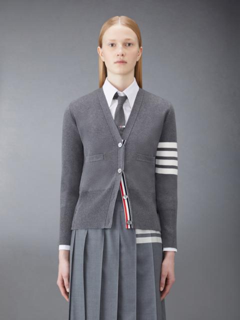 Medium Grey Cotton Crepe V-Neck 4-Bar Cardigan