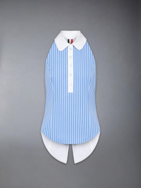 PINSTRIPE POPLIN BELTED PLEATED SHIRTDRESS