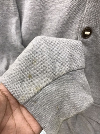 PLEASE READ THE DETAILS AND SEE THE PICTURES OF THE GOODS BEFORE MAKING A PURCHASE, ANY QUESTIONS ARE VERY WELCOME. SIZE( actual Measurement inch unit) CHEST : 21.5 LENGTH: 26 SHOULDER: 17 SLEEVE LENGTH: 25 -HAVE A DIRT ON THE ITEM ALL MEASUREMENT WERE BEEN MEASURE FLAT ON THE FLOOR. CONDITION :8/10 PLEASE LOOK CLOSELY ALL THE PHOTOS ATTACHED BEFORE BUY ❤️NO REFUND, NO RETURN❤️ TAKE NOTE PLEASE❤️ COMBINED SHIPPING IS ALLOWED & DISCOUNT . IT GREAT WAY TO SAVE MORE OF CUSTOMER MONEY. PAYMENT AND SHIPMENT/POST: WE ARE USING DHL EXPRESS, IT TAKES 3-5 DAYS ONLY TO ARRIVE. PLEASE LEAVE YOUR PHONE NUMBER ON THE NOTE WHILE MAKE A PURCHASE AND PLEASE MAKE SURE YOUR ADDRESS IS COMPLETE AND CORRECT. ETC: DURING SHIPPING ,WE ALWAYS STATE LOW VALUE THAN the original price for " CUSTOMS DECLARATION" to avoid taxes on buyers and we are not responsible if its eventually happen. All Items are Sold "AS IT IS" so Please be Sure to Read The Entire Description and Look at All The Pictures. DEAR VALUED CUSTOMER, PLEASE DONT EXPECT THIS ITEM CONDITION IS 100% LIKE NEW UNLESS I HAVE MENTION IT. THANK YOU VERY MUCH FOR YOUR VISIT..😊