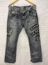 G. PLEASE READ THE DETAILS AND SEE THE PICTURES OF THE GOODS BEFORE MAKING A PURCHASE, ANY QUESTIONS ARE VERY WELCOME. SIZE( actual Measurement inch unit) WAIST 36 INSEAM 32 OUTSEAM 42.5 - HAVE A DEFECT ON THE DENIM PLEASE REFER ALL THE PHOTO DETAILS ALL MEASUREMENT WERE BEEN MEASURE FLAT ON THE FLOOR. CONDITION :8/10 PLEASE LOOK CLOSELY ALL THE PHOTOS ATTACHED BEFORE BUY ❤️NO REFUND, NO RETURN❤️ TAKE NOTE PLEASE❤️ COMBINED SHIPPING IS ALLOWED & DISCOUNT . IT GREAT WAY TO SAVE MORE OF CUSTOMER MONEY. PAYMENT AND SHIPMENT/POST: WE ARE USING DHL EXPRESS, IT TAKES 3-5 DAYS ONLY TO ARRIVE. PLEASE LEAVE YOUR PHONE NUMBER ON THE NOTE WHILE MAKE A PURCHASE AND PLEASE MAKE SURE YOUR ADDRESS IS COMPLETE AND CORRECT. ETC: DURING SHIPPING ,WE ALWAYS STATE LOW VALUE THAN the original price for " CUSTOMS DECLARATION" to avoid taxes on buyers and we are not responsible if its eventually happen. All Items are Sold "AS IT IS" so Please be Sure to Read The Entire Description and Look at All The Pictures. DEAR VALUED CUSTOMER, PLEASE DONT EXPECT THIS ITEM CONDITION IS 100% LIKE NEW UNLESS I HAVE MENTION IT. THANK YOU VERY MUCH FOR YOUR VISIT..😊