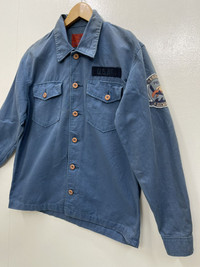 (AA-7)PLEASE READ THE DETAILS AND SEE THE PICTURES OF THE GOODS BEFORE MAKING A PURCHASE, ANY QUESTIONS ARE VERY WELCOME. SIZE( actual Measurement inch unit) CHEST :22 LENGTH:27 SHOULDER:18.5 SLEEVE LENGTH:23 HEM:22 ALL MEASUREMENT WERE BEEN MEASURE FLAT ON THE FLOOR. METERIAL :DARK CANVAS CONDITION :8/10 PLEASE LOOK CLOSELY ALL THE PHOTOS ATTACHMENT BEFORE BUY ❤️NO REFUND, NO RETURN❤️ TAKE NOTE PLEASE❤️ COMBINED SHIPPING IS ALLOWED & DISCOUNT . IT GREAT WAT TO SAVE MORE OF COUSTOMER MONEY. PAYMENT AND SHITMENT/POST: WE ARE USING DHL EXPRESS, IT TAKES 3-5 DAYS ONLY TO ARRIVE. PLEASE LEAVE YOUR PHONE NUMBER ON THE NOTE WHILE MAKE A PURCHASE AND PLEASE MAKE SURE YOUR ADDRESS IS COMPLETE AND CORRECT. ETC: DURING SHIPPING ,WE ALWAYS STATE LOW VALUE THAN the original price for " CUSTOMS DECLARATION" to avoid taxes on buyers and we are not responsible if its eventually happen. All Items are Sold "AS IT IS" so Please be Sure to Read The Entire Description and Look at All The Pictures. DEAR VALUED CUSTOMER, PLEASE DONT EXPECT THIS ITEM CONDITION IS 100% LIKE NEW UNLESS I HAVE MOTION IT. THANKS YOU VERY MUCH FOR YOUR VISIT..😊