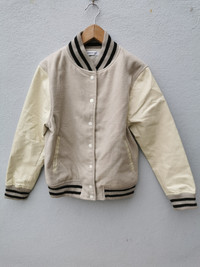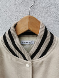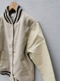 Japanese Brand - Vintage Browny Leather Sleeve Varsity Jacket
