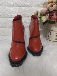 💯% GUARANTEED AUTHENTIC / ORIGINAL ALEXANDER MCQUEEN ZIPPER DETAIL ANKLE RED LEATHER BOOTS / BOOTIES. 🔹MADE in ITALY 🔹SIZE : 37 🔹Heel : 13cm ➡️Feature a red leather exterior with a snap closure on the side and wrap-around zipper. ➡️Also have a pointed square toe. Please check detailed pics for signs of usage Very much negotiable send me your offers kindly consider the shippng fee