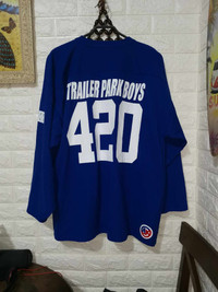 For sale as pack π₯π₯ Trailer park boys 420 athletic knit jersey π₯π₯ Large l315 w26 inches Excellent condition Trailer park boys vintage shirt Large l30 w22 inches With some pinholes and crack print Please see pics Trailer Xl L29 w22 inches Very much negotiable kindly consider shipping when offering Please send me your offers some part has discoloration please see pics Condition :- Good condition.. Please refers the pictures.. An item that has been used or worn previously.. See Our listing for full details and description of any imperfections.. Please don't expect it to be like new.. Payment and shipping - accept paypal only Please leave me your contact phone number, as the shipping company always need the phone number help delivering.. Please see pictures carefully !!! Don't forget to check out my store for MORE STUFF !!! Thank you very much for your visit offering Please send me your offers