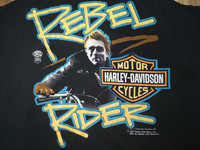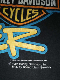 Harley davidson rebel rider james dean 1986 top vintage rare rare Xl l30 w23 inches Minimal cracks on the print and perfect fade Overall its in good condition considering its age Very much negotiable pm me thanks
