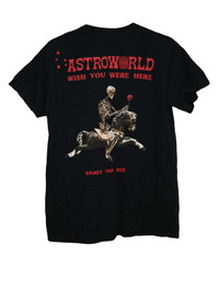 For sale Travis Scott Astroworld Enjoy The Ride Tee Amazing Piece Medium Length 27.5 inches Width 19.5 Shoulder 19 Sleeve 7 Hem 20 Minimal signs of usage Minimal cracks on print No inclusions please see detailed pics Good condition Very much negotiable Dm me