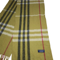 Vintage Burberry Green Check Classic Cashmere Scarf