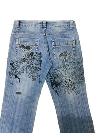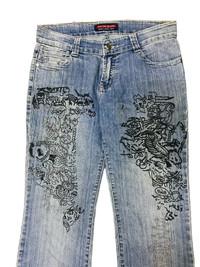 CUSTOM JEANS HISTORY ART DRAWING ELECTRIC CRIME FLARE STYLE
