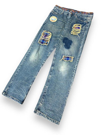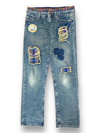 Distressed Denim - JAPAN DESIGNER DOUBLE WAIST DISTRESSED PATCHWORK STRAIGHT CU