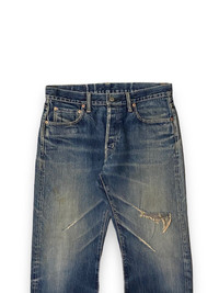 Japanese Brand - Men Blue Blue Japan Selvedge Distress Dirty Washed Button ร