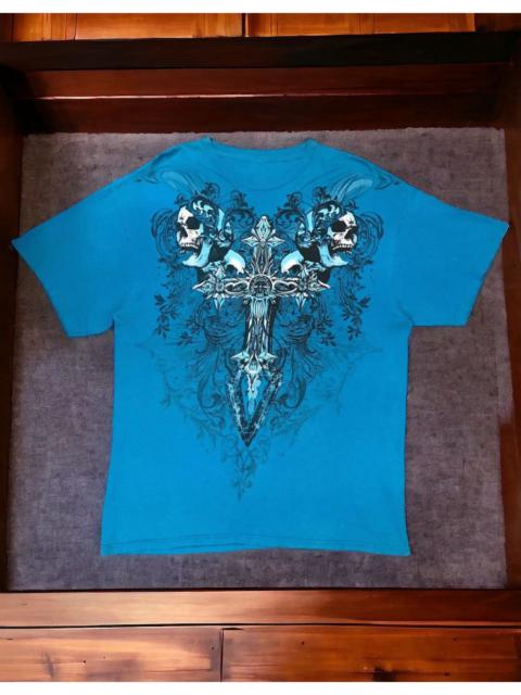 Japan Affliction Twin Skulls Cross Magical Sword Religion
