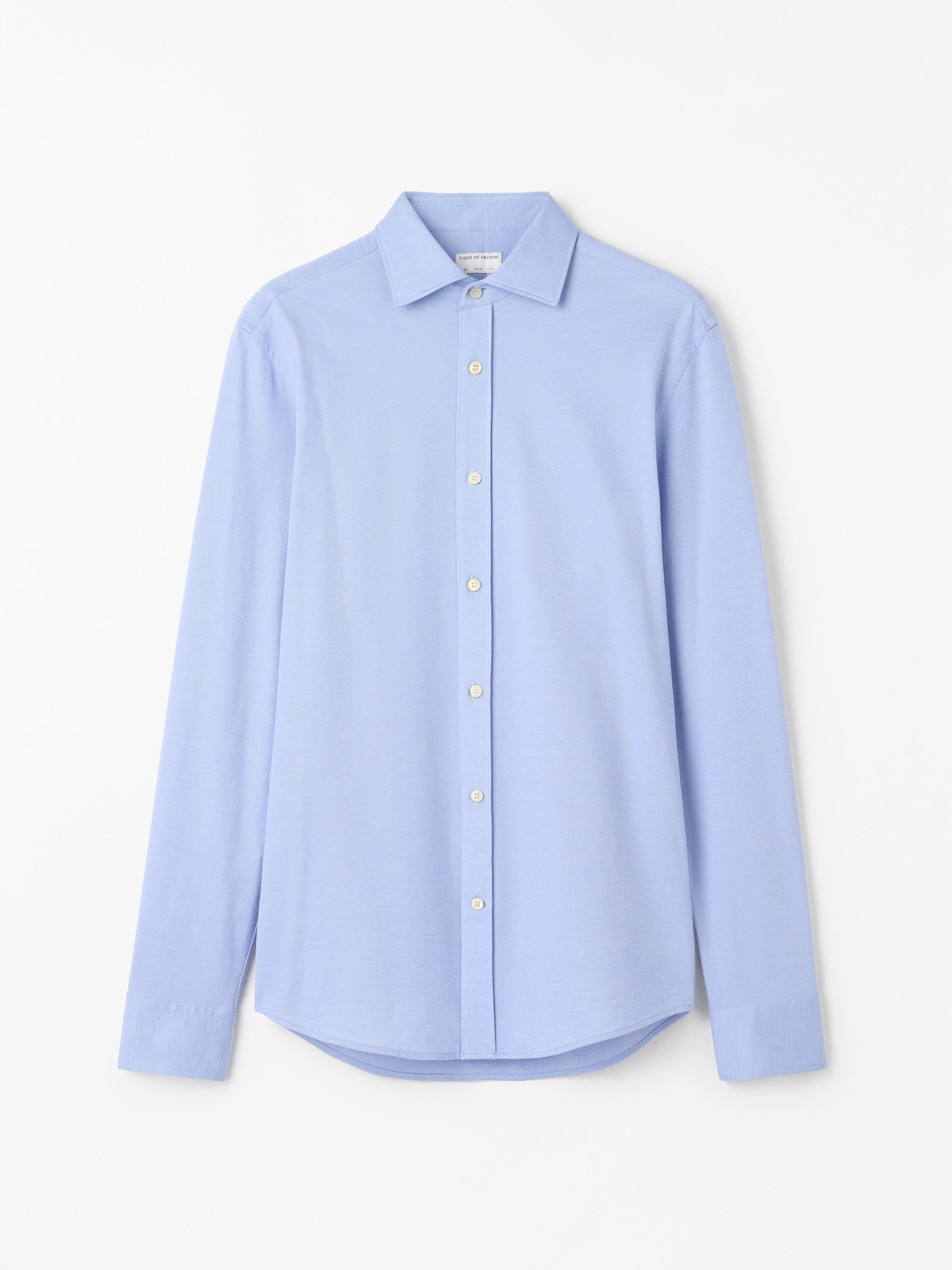 The Adley is a formal shirt crafted from a jersey quality. It features a classic shirt placket and rounded cuffs with double buttons for size adjustment, along with small pleats at the cuffs. The shirt is adorned with classic buttons at the French placket, cuffs, and sleeve plackets. It includes darts at the back and a split double-layer yoke for added detail. The centre back length measures 79 cm, and the shirt is finished with a curved hem. Product Details - 64% Cotton, 36% Polyester - Formal shirt in a jersey quality - Exposed, classic shirt placket - Rounded cuffs with double buttons for size adjustment - Small pleats at cuffs - Classic shirt buttons at placket, cuffs and sleeve plackets - Split double layer yoke at back - Center back length: 79 cm - Curved hem - Made in China - Model is 188 cm and wearing a size 40 - For a complete look, wear it with Tenuta Trousers and Forma Shoes and Septa Tie - Art No.1135072L7