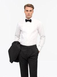 Al is a refined tuxedo shirt, featuring a pleated plisse bib for a classic, elegant touch. Designed with a semi-spread collar, hidden placket, and French cuffs, it balances timeless sophistication with modern tailoring. Cut in a slim fit based on our Adley block, it offers a sharp, streamlined silhouette ideal for formal occasions. Product Details - 100% Organic Cotton - Tuxedo shirt with plisse bib, based on Adley fit - Semi-spread collar - Festive/formal - Hidden placket - French cuffs - Includes removable knotted cufflinks - Sewn plastic buttons - Back L: 79 cm - Curved hem - Made in Romania - Model is 186 cm and wearing a size 40 - For a complete look, wear it with Tenuta Tuxedo Trousers and Nuptone Shoes - Art No.113754090