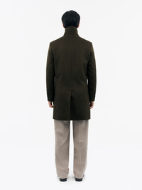 Product Details - 60% Recycled Wool, 30% Polyamide, 10% Recycled Cashmere - Minimalist funnel-neck coat - Made in cashmere-wool blend - Mid-thigh length - Hidden closure at front - Single vent at back and fully lined - Made in Romania - Model is 186 cm and wearing a size 48 - Art No.1136904CC