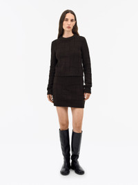 The Cherry skirt is crafted from a soft cotton-wool blend yarn and features a rich textured finish. Knitted in a classic basket weave stitch, it offers a subtle yet distinctive look. Designed in a short length, the skirt is unlined for a lightweight feel. It includes an internally concealed elastic waistband for a smooth, comfortable fit, while the hem is neatly finished with a rib trim for added structure and style. Product Details - 55% Cotton, 45% Wool - Texture stich skirt, knitted in a cotton wool blend yarn - Unlined - Short length - Knitted in a basket-weave stitch - Elastic waistband that is concealed internally - Hem is finished with a rib trim - Made in China - Model is 177 cm and wearing a size S - To complete the look, wear it with Marie Sweater and Abie Boots - Art No.11323503H