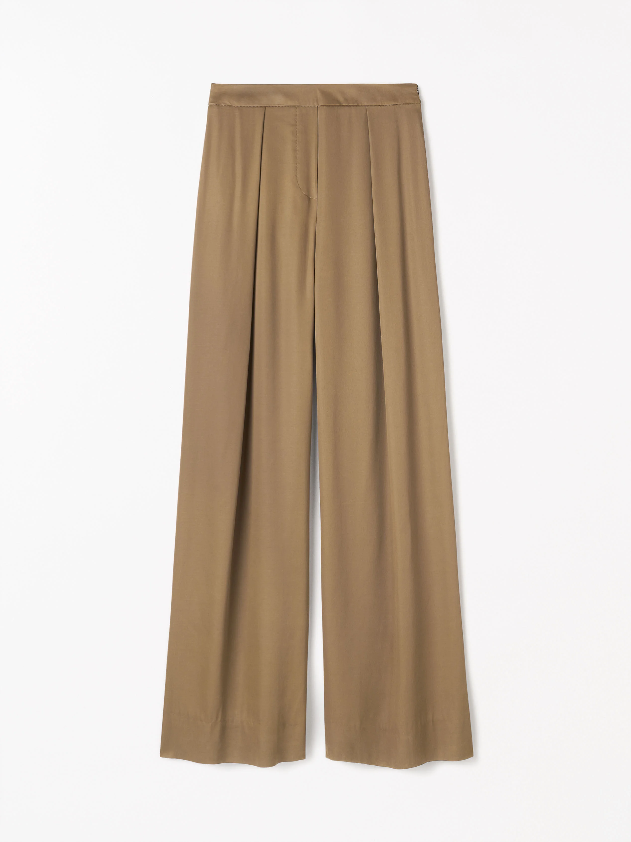 Cora are high-waisted maxi trousers featuring deep pleats and wide legs, crafted from a viscose blend. Designed with slanted side pockets and back welt pockets, they are finished with a regular folded hem to allow for easy length adjustment. Product Details - 52% Viscose, 48% Viscose (LENZING (TM) ECOVERO (TM) ) - Trousers in a drapey viscose fabric - Relaxed loose fit - Wide leg with pleats at front - Fitted high waist with waistband - Invisible zipper and hook and eye closure at side - Welt pocket at back - Folded bottom hem - Made in China - Model is 177 cm and wearing a size 36 - For a complete look, wear it with Robyn Blouse and Cliniala Shoe and Diri S Bag - Art No.114705134
