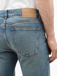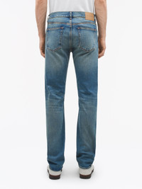 The Des jeans are our slim-straight fit, crafted from comfort stretch denim for ease and flexibility. Featuring a mid-rise waist and a straight leg, they offer a modern silhouette. Thoughtful details include triple stitching, a branded patch, and a classic five-pocket construction with a coin pocket. Product Details - 79% Cotton, 20% Cotton Recycled, 1% Elastane - Mid-rise fit in comfort stretch - Triple stitching, branded patch - Five pocket, coin pocket - Straight leg - 32 = 80 cm - Echo wash - Made in Tunisia - Model is 188 cm and wearing a size 30 - For a complete look, wear it with Wilde Sweater and Cienci Sneakers - Art No.11360921F