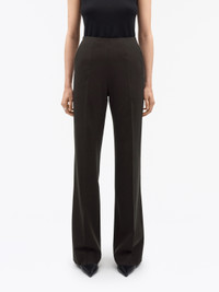 Classic Eedit trousers designed with a mid-waist and straight leg. The Eedit have slanted pockets at the front and welt pockets at the back, finishing with a pressed crease. The trousers have no waistband and feature a zip opening added to the side seam for a minimal look. Product Details - 53% Polyester Recycled, 43% Wool, 4% Elastane - Side closure trouser for a flat and flattering front cut in a wool blend - Full length - Slanted pockets at front - Single welt pockets at back - Finished with pressed crease - Made in Romania - Model is 175 cm and wearing a size 36 - To complete the look, wear it with Eliwiraa Jacket and Alitta Top - Art No.11358303H