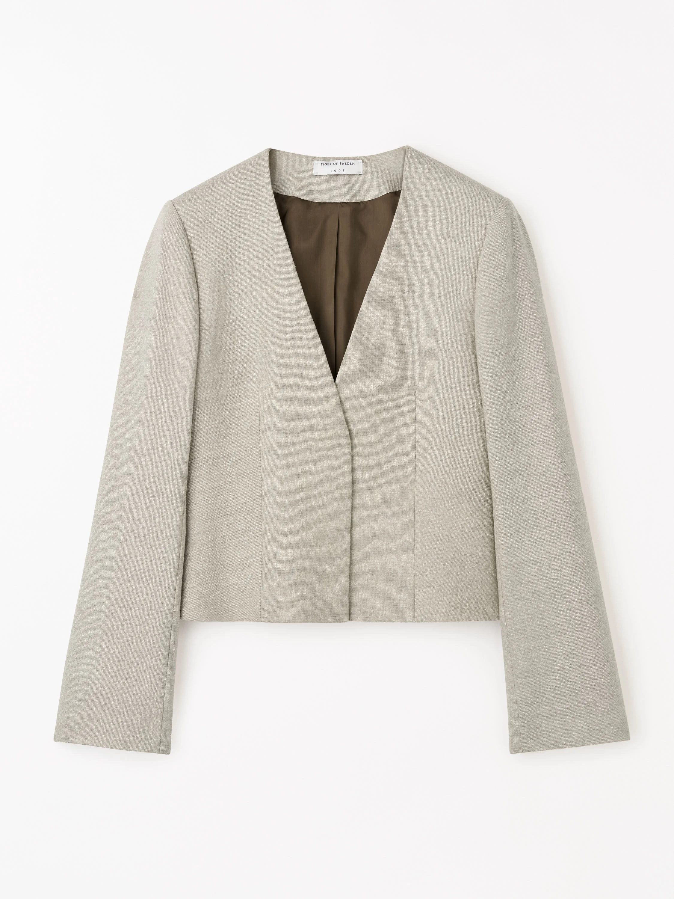 The Eleanor blazer is a minimalistic take on everyday tailoring, designed with a relaxed fit and short length for a modern yet effortless silhouette. Its sharp yet understated structure is elevated by a single hidden button closure, creating a seamless front. Crafted for versatility, it pairs effortlessly with both casual and formal pieces, making it an essential staple in a refined wardrobe. Product Details - 58% Wool, 29% Polyamide, 11% Silk, 2% Lycra - Relaxed fit and short length blazer - Sharp yet understated structure - Single hidden button closure, creating a seamless front - Model is 177 cm and wearing a size 36 - For a complete look, wear it with Ellie RMS RWS Pullover and Umaas Trousers and Zoka Shoe - Art No.113904107