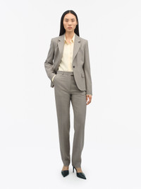An everyday tapered trouser designed for versatility and ease. Cut to full length, it features slanted front pockets, single welt pockets at the back, and classic belt loops. Finished with sharp pressed creases, it offers a clean, tailored look suitable for both casual and formal settings. Product Details - 73% Wool, 19% Recycled Polyester, 8% Polyamide - Everyday tapered trouser - Full length with slanted front pockets - Single welt pockets at back - Classic belt loops - Finished with sharp pressed creases - Made in Romania - Model is 177 cm and wearing a size 36 - For a complete suit look, wear it with Nancy Jacket and Celsa Shirt - Art No.113579131