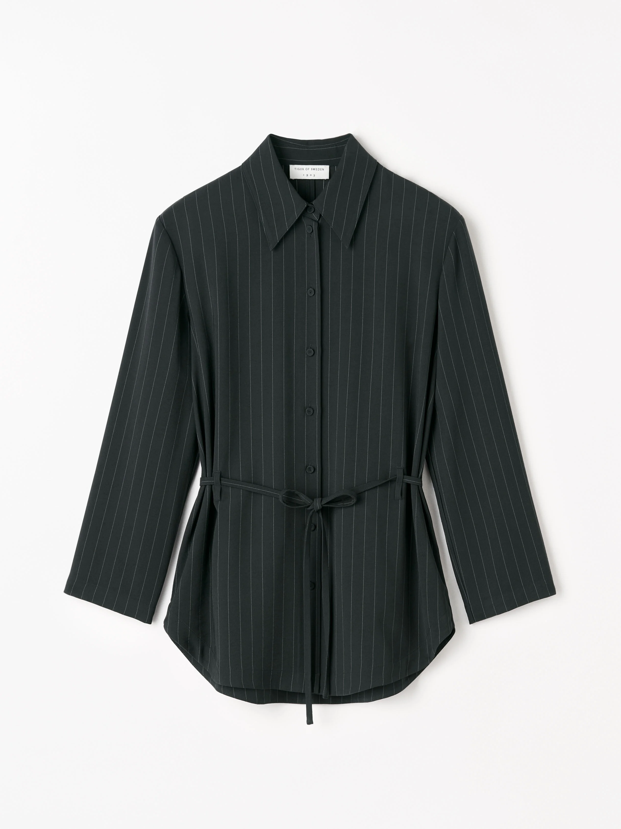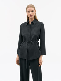 The Felix shirt blouse is crafted from a tailored, drapey midweight fabric that offers both structure and fluidity. Designed with a relaxed fit, it features a pointed collar and a front French placket with fabric-covered buttons for a refined touch. The cropped sleeves have a subtle flared shape, adding a hint of movement to the silhouette. At the front waist, attached tie straps and belt loops allow for customisable styling. The curved hem is slightly longer at the back, creating a flattering and contemporary finish. Product Details - 91% Rayon, 8% Nylon, 1% Polyester - Shirt blouse in a tailored drapy midweight fabric in relaxed fit - Pointed collar - French placket at front with fabric covered button closure - Cropped sleeves with slightly flared shape - Attached tie straps and beltloops at front waist - Curved bottom hem, slightly longer at back - Made in China - Model is 175 cm and wearing a size 36 - To complete the look, wear it with Ellis Trousers - Art No.1133862Y9