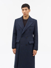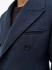 The Hennri is our signature 100% Swedish Wool double-breasted coat featuring sharp shoulders and an elegant collar lapel. It includes a jetted chest pocket, kissing buttons on the sleeve vents, and a single vent at the centre back. The coat has welt pockets with flaps and a fully lined interior with signature ToS double buttonholes on the lapel adding a distinctive finishing touch. Product Details - 100% Wool - Double breasted coat with sharp shoulder and elegant collar lapel - Jetted chest pocket - Kissing buttons at sleeve vent - Single vent at centre back - Welt pockets with flaps - Fully lined - ToS signature double button - 100% Swedish Wool - Made in Romania - Model is 186 cm and wearing a size 48 - For a complete look, wear it with Gregory Sweater and Marty Jeans and Foveo Shoes - Art No.113722284