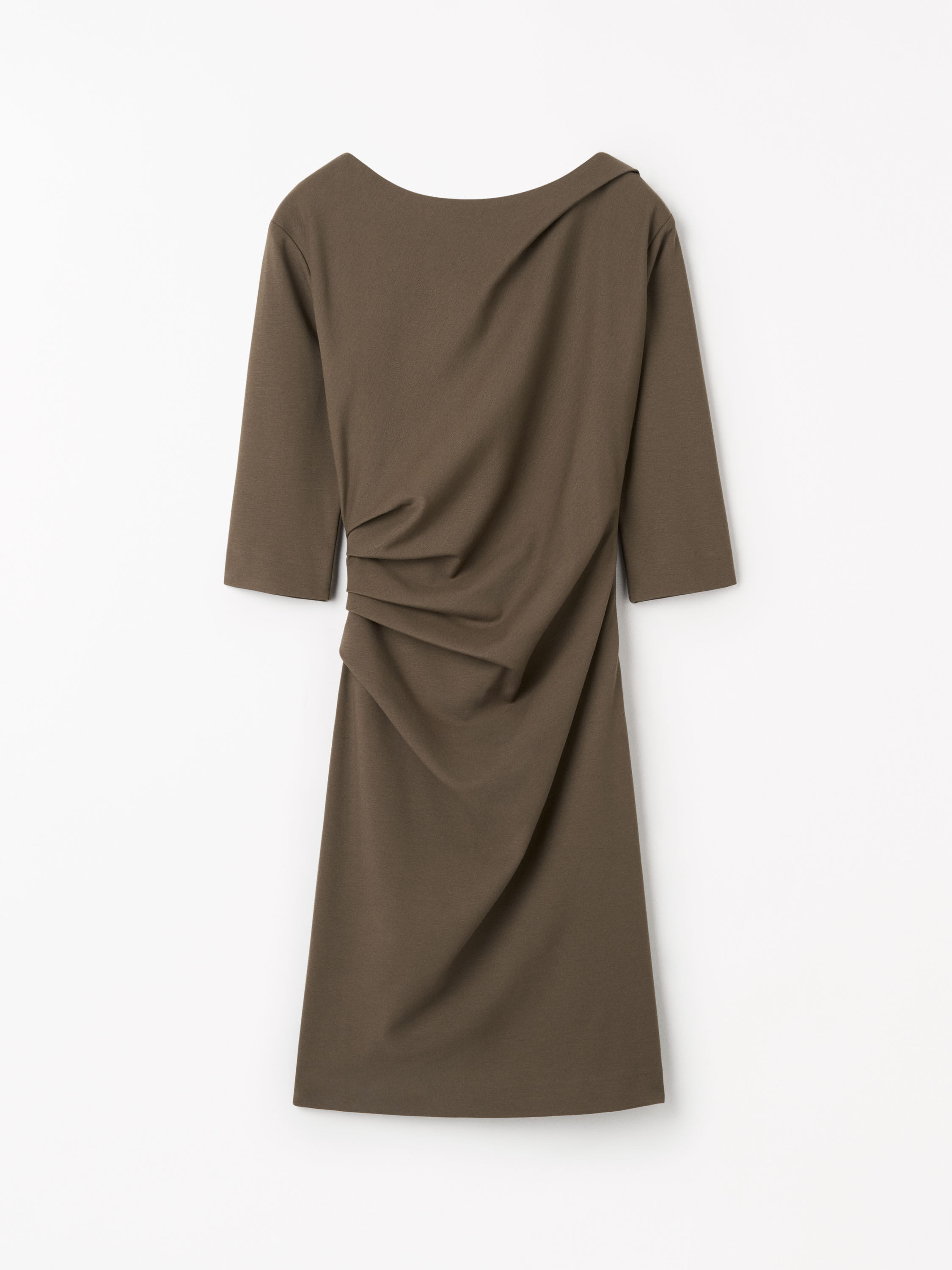 Izza is a feminine day dress with elegant ¾ sleeves. Its fitted, knee-length silhouette is embellished with draped pleats over the waist and bodice. Product Details - 69% Viscose, 26% Polyamide, 5% Elastane - Knee-length day dress in Punta Milano jersey - Slim fit with three-quarter sleeves - Flattering draped pleats over waist and bodice - Fully lined with stretch lining - Made in Romania - To complete the look, wear it with Zoka Pumps - Art No.11079311G