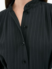 The Jodie dress is crafted from a tailored, drapy midweight fabric that offers both structure and fluidity. Designed for a relaxed, loose fit, it features a small stand-up collar and a half placket at the front with a classic button closure. The long sleeves are finished with cuffs and button fastenings, adding a touch of traditional tailoring. A double-layered back yoke enhances the silhouette, complemented by gentle gatherings at the front and back for subtle volume. The waist is defined with a wide belt threaded through belt loops, allowing for an adjustable fit. Practical details include side seam pockets and a back slit for ease of movement. The hem is curved and slightly longer at the back, giving the dress a refined yet effortless finish. Product Details - 91% Rayon, 8% Nylon, 1% Polyester - Shirt dress in a tailored drapy midweight fabric - Relaxed loose fit - Small stand-up collar - Half placket at front with button closure - Long sleeves with cuffs and button closure - Classic tailored buttons - Double layer back yoke with gatherings at front and back - Wide belt and beltloops at waist - Pockets at side seams - Slit at back - Curved bottom hem, slightly longer at back - Made in China - Model is 177 cm and wearing a size 36 - Art No.1133892Y9