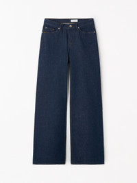 Kinne Jeans are loose-fit jeans, they are mid rise and feature five pockets with a flared leg and a rinse wash. Product Details - 100% Cotton - Mid-rise rigid silhouette - Triple stitching, branded patch - Five pocket, coin pocket - Flared leg - Facade wash - Made in Tunisia - Model is 177 cm and wearing a size 26 - For a complete look, wear it with Eliwiraa Jacket and Foru Bag and Liqua Belt - Art No.113940209