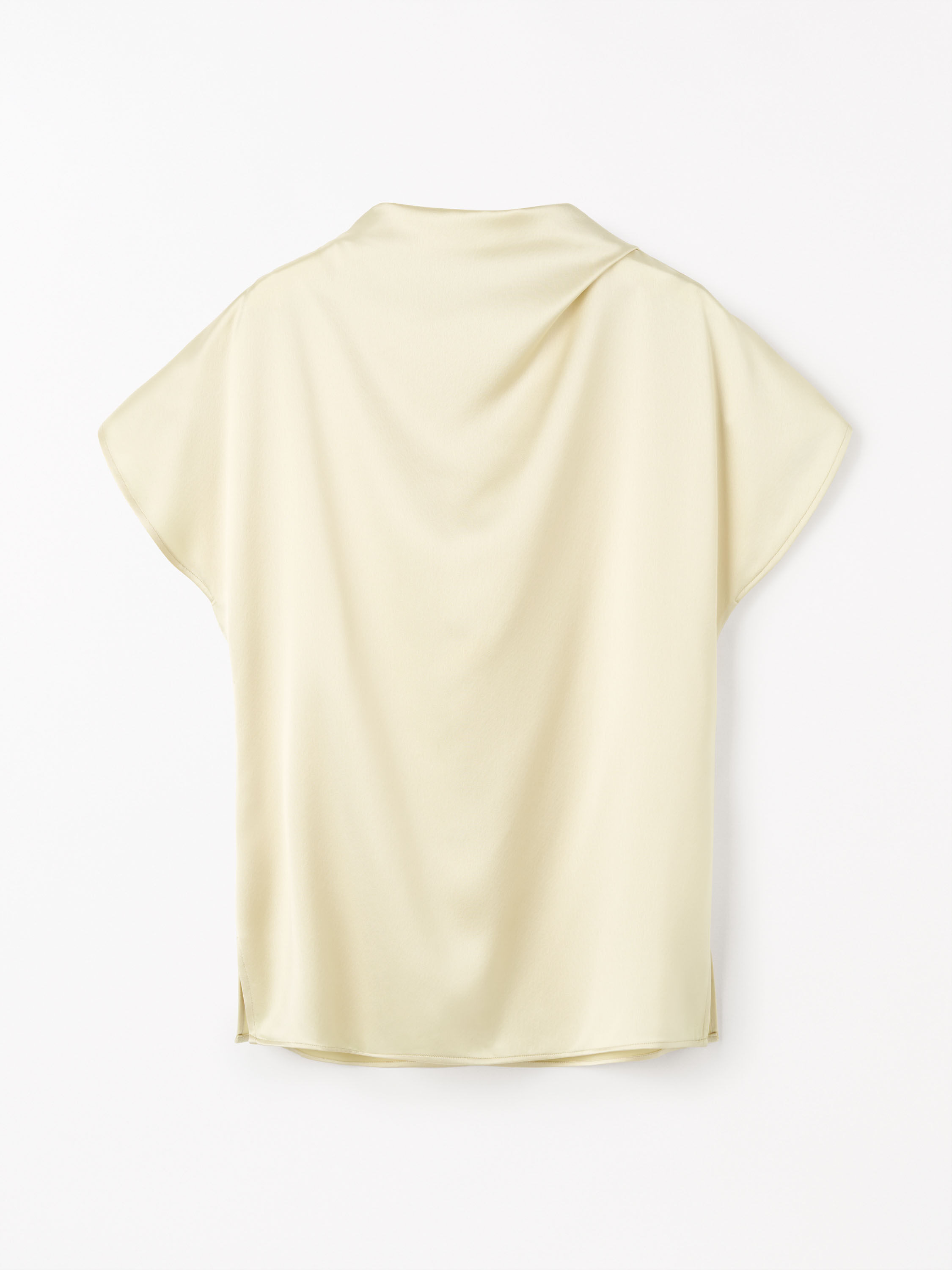 Lei is a refined evening top designed with effortless elegance. It features a gracefully draped mid-high neckline and delicate cap sleeves, artfully wrapped like unfolding petals. Subtle side slits at the hem enhance movement and comfort, making it the perfect pairing with tailored trousers. Crafted from luxurious, heavy satin, it boasts a rich, silky hand feel that catches the light beautifully. Available in a pearl grey, Lei can be worn as a matching set with the Reylynn skirt for a seamless, polished look. Product Details - 75% Acetate, 25% Polyester - Drapey funnel neck blouse in a satin fabric - Cap sleeve - Regular fit - Funnel neckline - Invisible zip and hook and eye closure at center back neckline - Hip length - Straight hem - Pleat at wearers left side shoulder - Overlapping fabric detail at back of shoulders - Splits at side seams at bottom hem - Made in China - Model is 177 cm and wearing a size 36 - For a complete look, wear it with Joni Jacket and Hedvi Trousers - Art No.1137011CT