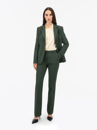 The Noowa trousers are crafted from a cotton stretch blend, offering a slim fit and mid waist for a comfortable, yet stylish look. They are full length and feature a zip, hook, and bar closure. The front slanted pockets and single welt pockets at the back add functionality, while the blind-stitched bottom hem provides a clean finish. Product Details - 52% Organic Cotton, 45% Polyester, 3% Elastane - Trousers in cotton stretch blend - Slim-fit and mid-waist silhouette - Full length - Zip, hook and bar closure - Slanted pockets at front - Single welt pockets at back - Blind-stitched bottom hem - Made in Romania - Model is 177 cm and wearing a size 36 - For a complete suit look, wear it with Ylja Jacket and Celsa Shirt - Art No.112202404