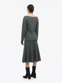 The Sian skirt is crafted from 100% boiled merino wool, offering a structured yet comfortable feel. Knitted in a smooth jersey stitch, it features a slim fit through the hips that gently flares out at the hem for a flattering silhouette. Designed to fall at calf length, this unlined skirt is finished with an elastic waistband for ease of wear and a clean, minimalist look. The wool in this product is certified by the Responsible Wool Standard. Product Details - 100% Wool - Merino - Knitted in 100% Merino wool - Unlined - Calf length - Slim fit with flared hem - Elastic waistband - Knitted in a jersey stitch - Responsible Wool Standard - Made in China - Model is 177 cm and wearing a size 26 - For a complete look, wear it with Dolore RWS Pullover - Art No.11335731E