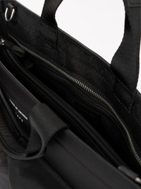 The Sonor Laptop Bag offers an elevated yet minimalist design tailored for the modern professional. Made from Limonta Davis Nylon with saffiano leather trim, this sleek bag is the perfect balance of style and utility. Two large nylon front pockets provide convenient storage for essentials, while the leather-trimmed top opening adds an elevated touch. Inside, the bag features a dedicated padded slip pocket for a laptop and a leather-trimmed zip pocket for smaller items. The Sonor’s clean, hardware-free design and subtle branding make it a perfect option for a smart, casual look. Lightweight yet durable, it’s the ideal companion for the office or a day on the go. Product Details - 90% Polyamide, 10% Acrylic - Lining in 100% Polyester - Leather trims in 100% Cow Leather - Metal trims in matte silver - Adjustable and detachable shoulder strap - Features two zip pockets at front and two internal pockets - Printed logo at front - Leather label logo internal - Size 40 x 30 x 6 - Volume approx 7 L - Made in China - Art No.113302050