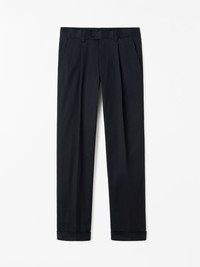 Tenuta Trousers take all the best elements of Tiger of Sweden trousers, and do them even better, creating an instant classic style. Slim fit and mid rise, this pair are made with a seasonal cotton twill stretch. Product Details - 97% Organic Cotton, 3% Elastane - Slim Fit - Chino Trousers in a cotton twill stretch for a casual look - Mid rise with turn-up at foot - Front pleat - Slanted pockets, double paspoal and flap pocket at back - Made in Romania - Model is 187 cm and wearing a size 48 - Art No.113493284