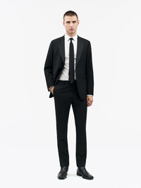 Product Details - 100% Wool - Slim Straight Fit - Slim-fit Tuxedo trousers in 100% wool - Mid rise with slim leg - Contrast side tape - Knee lining - Model is 188 cm and wearing a size 48 - Art No.109574050