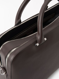 The Valise L is a spacious, business-ready bag made from premium Carnaby leather. Featuring two large zippered compartments, it includes a dedicated laptop sleeve and a full-length expandable section for clothing, perfect for overnight trips. A full leather shoulder strap ensures comfort, while an internal leather-trimmed pocket keeps essentials like keys or phones safe. Discreet bespoke hardware and blind-embossed branding complete the design, offering a refined, modern aesthetic. Whether for daily use or business travel, the Valise L combines sophisticated style with thoughtful functionality. Product Details - 100% Cow Leather - Spacious, business-ready bag made from premium Carnaby leather - Featuring two large zippered compartments, it includes a dedicated laptop sleeve and a full-length expandable section - A full leather shoulder strap ensures comfort, while an internal leather-trimmed pocket keeps essentials like keys or phones safe - Discreet bespoke hardware and blind-embossed branding - Made in India - Art No.11393410N