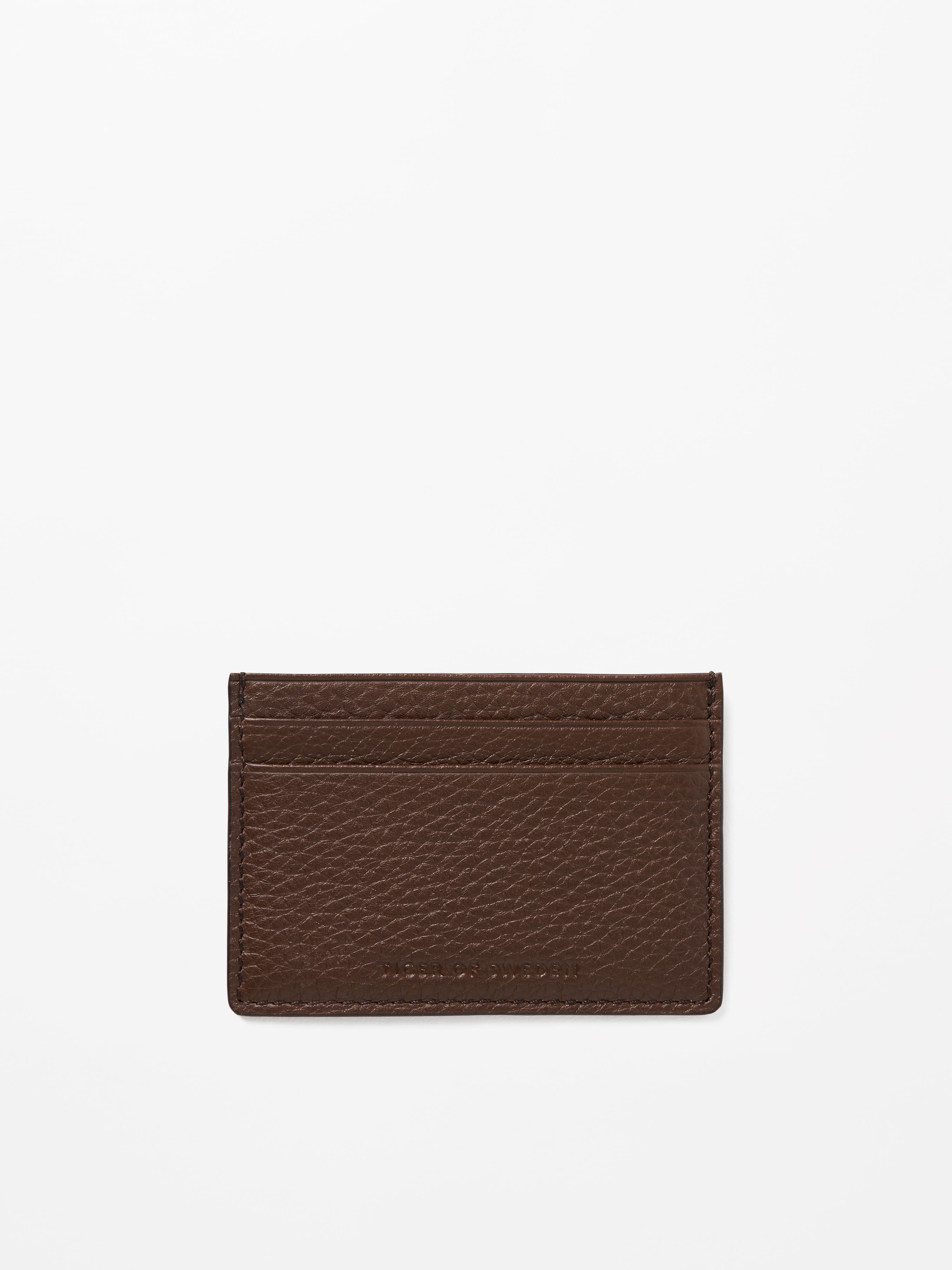 Product Details - 100% Calf Leather - Card holder in soft grainy leather with smooth leather trimmings - Features one note pocket on top and four card slots - RFID anti-skimming lining - Embossed Tiger of Sweden logo at the front - Size: 7 x 10 cm - Made in India - Art No.10974012S