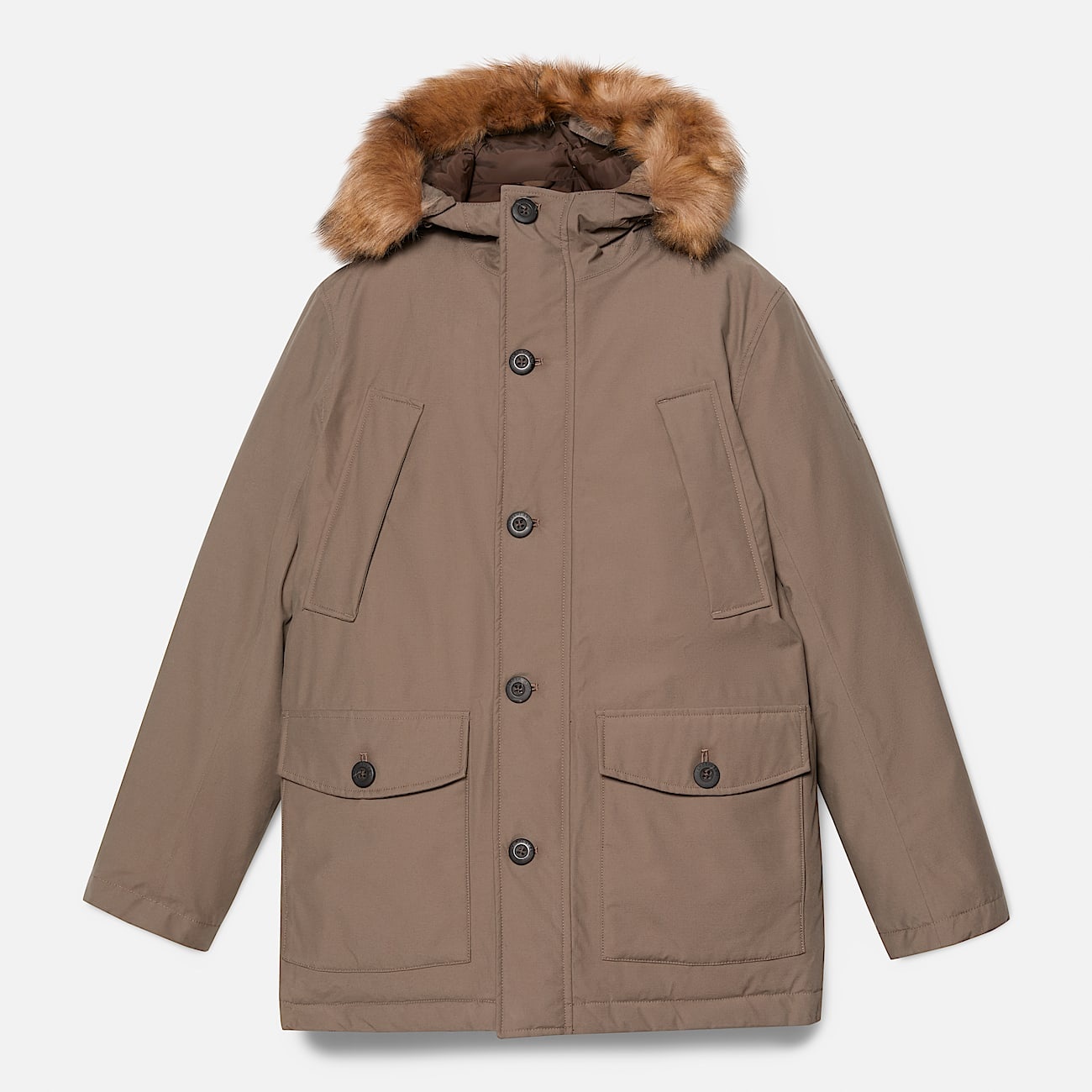 Style TB0A22W2BK0 Help protect yourself from the wind, wet, and cold with our Scar Ridge men's parka featuring washable Thermore® ECODown™ Insulation. It's made of a 67% cotton and 33% polyester blend plus, Tier 2 Waterproof Technology with critical seams sealed. You'll also enjoy a faux fur hood, large storage pockets, and waist and cuff adjusters that help stop intrusion from wind and water. Features ReBOTL™ Material The ReBOTL™ material used in Timberland® apparel contains at least 40% recycled PET (recycled polyethylene terephthalate, the stuff plastic bottles are made of). The ReBOTL™ material used in Timberland® footwear and accessories contains at least 50% recycled PET. (Excepting trace materials) Thermore® ECODown® Insulation Soft, lightweight, washable thermal insulation made of 100% recycled plastic. Waterproof Clothing Our waterproof clothing is designed and built to be completely waterproof in wet, rainy conditions. Seam-sealed for extra protection, these garments are made of or treated with rubber, plastic or another sealing agent to prevent penetration by water. Product Detail - Woven: 67% cotton, 33% polyester (196 g/m²) - Thermore® ECODown™ Insulation made of 100% recycled plastic - Windproof - Tier 2 waterproof technology with critical seams sealed - Faux fur hood - Front zipper opening with button closure - Front chest and patch pockets with internal pocket - Inside waist and cuff adjusters - Center Back Length: 32" (81.3cm) - Imported Care Instructions - Close fastener before wash. Machine wash cold. Gentle or delicate cycle. Wash separately. - Only non-chlorine bleach when needed. - Tumble dry low. - Cool iron when needed. Do not iron trim and decoration. - Do not dry clean.