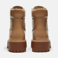 Style TB0A2H3CAKJ A take on our classic boots in a soft spring hue, this Stone Street 6-inch Waterproof Platform Boot is made with Premium Timberland® leather and a ReBOTL™ fabric lining containing at least 50% recycled PET plastic. The 200 grams of PrimaLoft® insulation and seam-sealed construction help keep your feet warm and dry, while the OrthoLite® Impressions memory foam footbed and a steel shank help promote cushioning for long-lasting comfort. Features Premium Timberland® Leather By purchasing this product, you are supporting Leather Working Group certified tanneries https://www.leatherworkinggroup.com/ ReBOTL™ Material The ReBOTL™ material used in Timberland® apparel contains at least 40% recycled PET (recycled polyethylene terephthalate, the stuff plastic bottles are made of). The ReBOTL™ material used in Timberland® footwear and accessories contains at least 50% recycled PET. (Excepting trace materials) OrthoLite® Insoles OrthoLite® comfort foam insoles are lightweight, provide moisture transport, antimicrobial function, and long-term cushioning. The ultra-breathable material won't break down or lose cushioning over time, keeping your footwear comfortable and supportive. PrimaLoft® Insulation PrimaLoft® insulation is a soft, lightweight compressible down alternative insulation. It uses a patented microfiber structure to help retain warmth, even if the fibers get wet - helping you stay dry, warm and comfortable. Waterproof Seam-Sealed Waterproof seam-sealed footwear includes waterproof leather for durable waterproof protection. Regenerative Materials Regenerative materials have been sourced from farms and forests which are managed using regenerative agricultural practices. This method encompasses a variety of practices which aim to help promote biodiversity, enhance water cycles, improve soil health, and sequester carbon. Some commonly implemented practices include reducing chemical inputs, integrating cover crops, and reducing soil disturbance. For more information related to specific materials, please visit https://www.timberland.com/en-us/responsibility Waterproof Footwear Our waterproof footwear incorporates a variety of advanced waterproofing materials, treatments and processes. We start with waterproof leathers that are sealed as part of the tanning process; we then either seam-seal the footwear or use an internal waterproof breathable membrane to help feet stay dry. Tongues and zippers treated with durable water resistant coatings utilize integrated gussets, to further deter water entry. Product Detail - Upper made with waterproof Premium Timberland® leather - Lace-up style - Padded collar - 200 g of PrimaLoft® insulation - ReBOTL™ fabric lining containing at least 50% recycled plastic - OrthoLite® Impressions memory foam footbed - Steel shank for arch support - Seam-sealed construction - 10% of the rubber used to make the outsoles was sourced from farms implementing regenerative agricultural practices - Rubber lug outsole - Imported