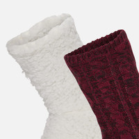 Style TB0A692T648 These women's cabin socks of cozy 65% acrylic, 33% polyester, and 2% elastane knit feature high-pile fleece linings and slip-resistant silicone grips, helping combine warmth and safety in a giftable design. Product Detail - Cozy cabin sock of 65% acrylic/33% polyester/2% elastane knit - High-pile fleece lining - Slip-resistant silicone grip - Patch logo - Imported