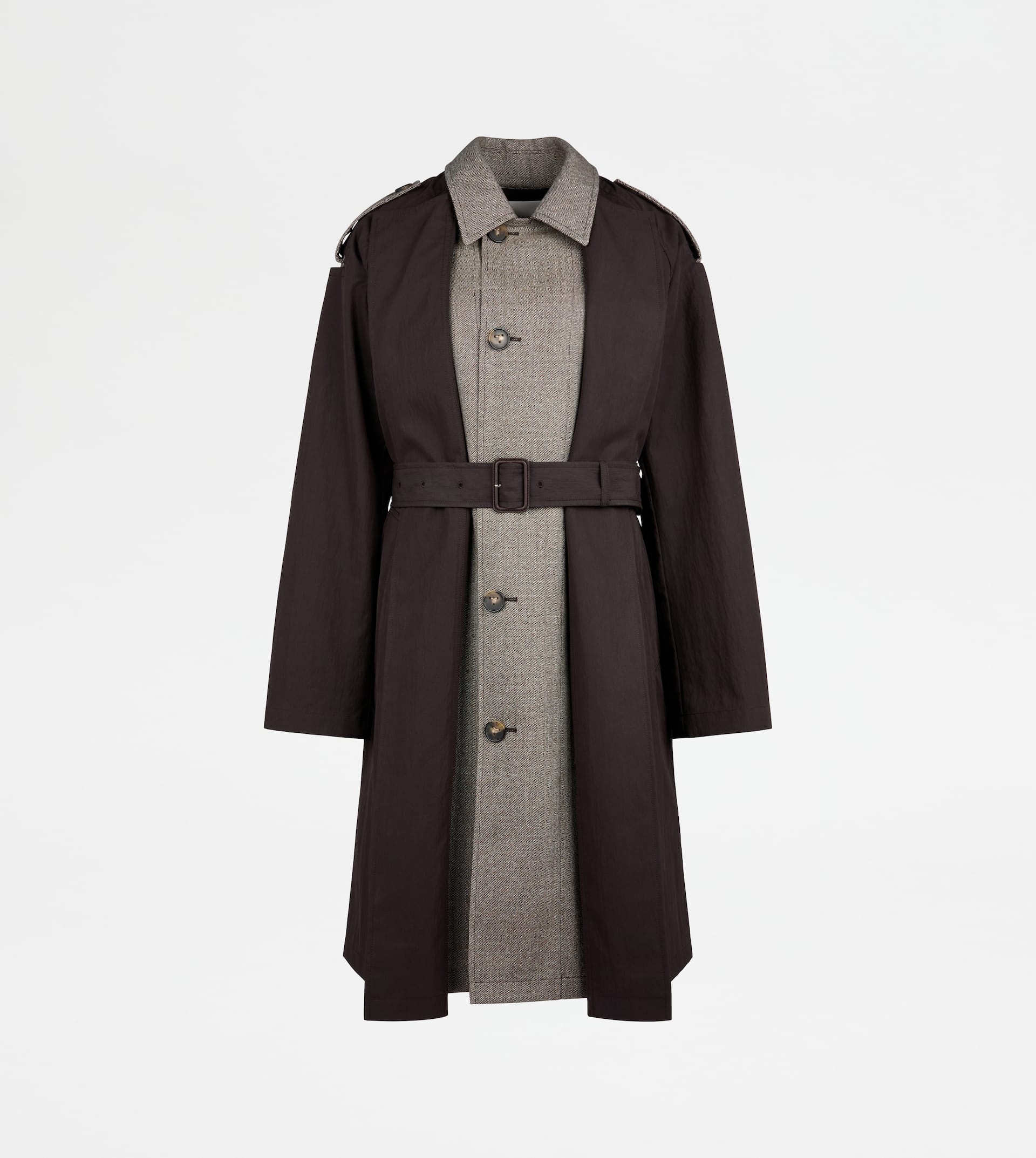 2-IN-1 TRENCH COAT IN TECHNICAL COTTON AND WOOL - BROWN