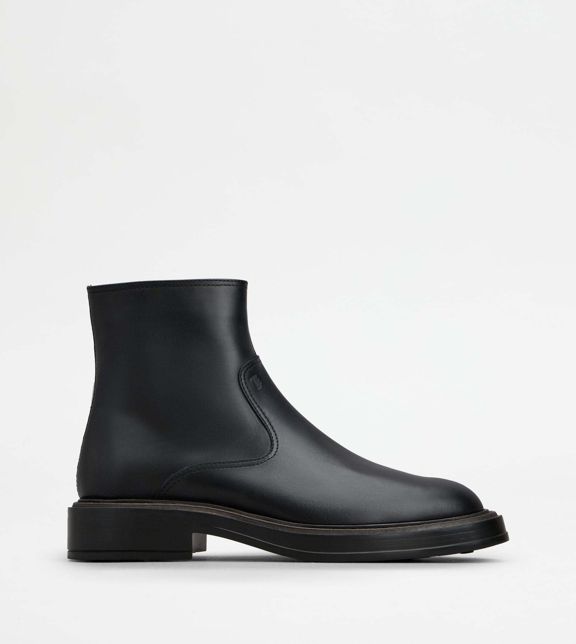 Ankle boots with essential line crafted in elegant semi-shiny leather, with zip on the inside. Enhanced by the Tod's monogram stamped on the front, they come with leather welt and extralight rubber outsole with distinctive rubber pebbles on the tread. - Made in Italy - Men's leather ankle boots - Leather upper - Semi-shiny finishing - Stamped Tod's monogram - Zip on the inside - Leather insole - Rubber outsole with embossed rubber pebbles - Maintenance and care cards included - Branded dustbag