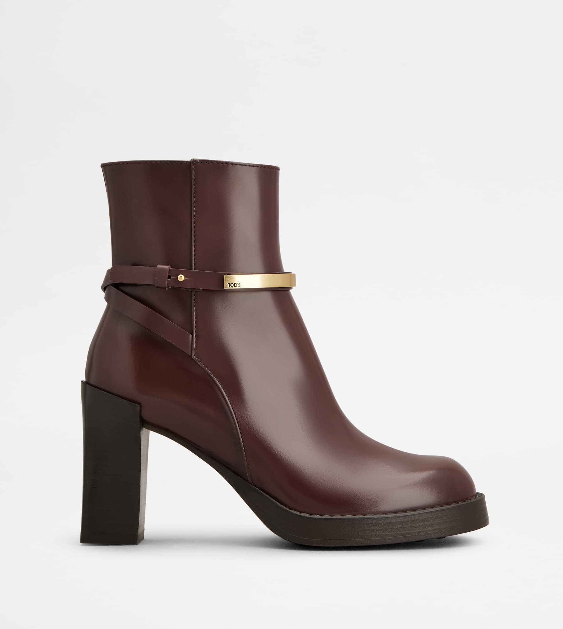 ANKLE BOOTS IN LEATHER - BURGUNDY