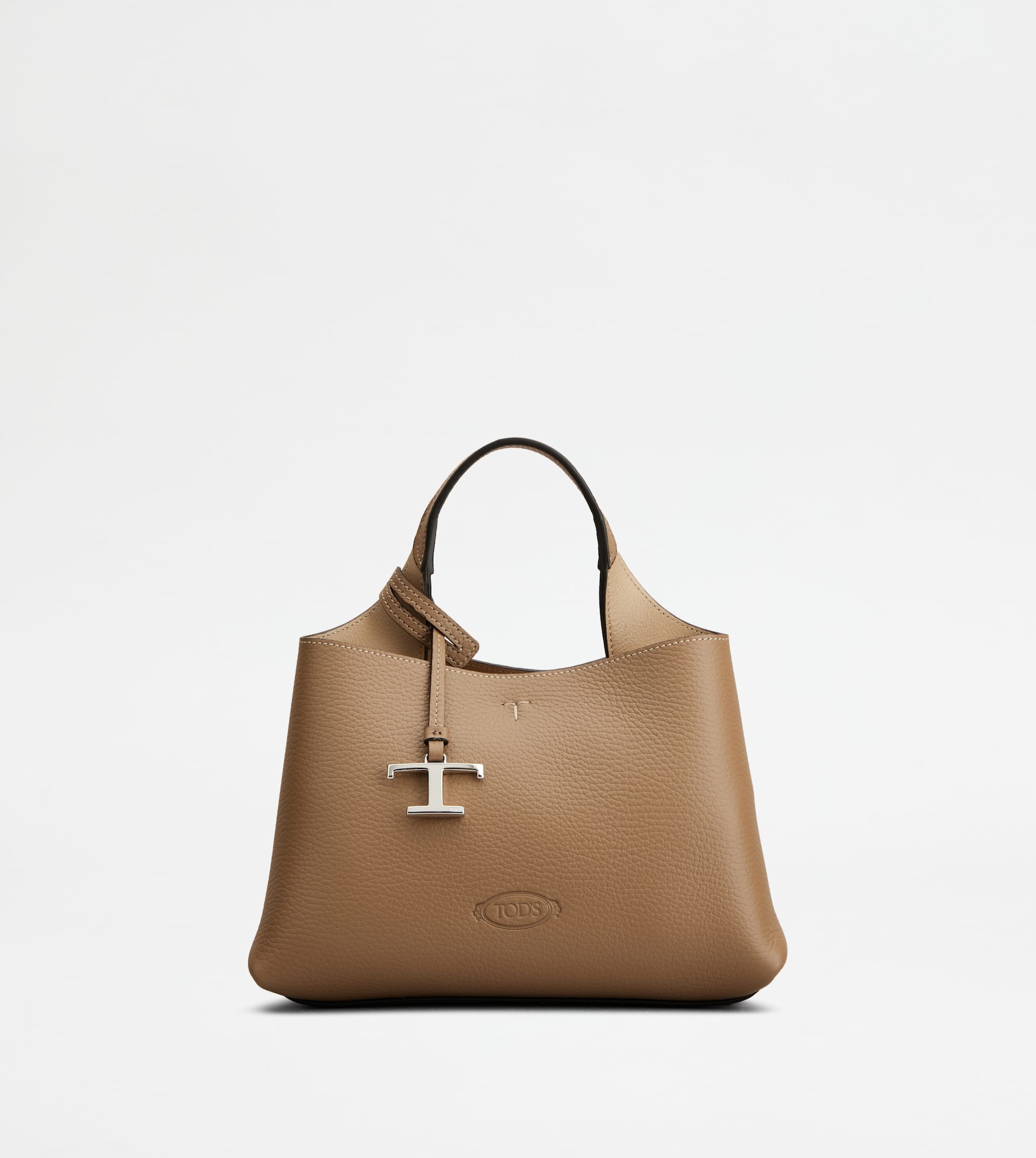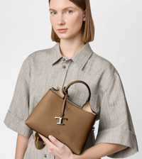 Bag in soft exposed grain leather, with Tod's logo stamped on the front, flat handle and removable shoulder strap. The interior comes with 2 compartments separated by a central zipped pocket. An elegant creation enhanced by distinctive iconic detailing, such as the metal T Timeless pendant and T-stitching. - Dimensions: L 9.8 ins x H 6.7 ins x D 5.7 ins - Handle: height (drop) 4.3 ins - Adjustable and removable shoulder strap: length 44.3 ins max - Made in Italy - Bag in leather - Item crafted in leather - Tod's logo stamped on the front - Removable pendant with metal T Timeless accessory - Snap hook and metal ring closure - 2 compartment interior - Internal flat zipped pocket - Brande metal feet - Maintenance and care cards included - Branded dustbag