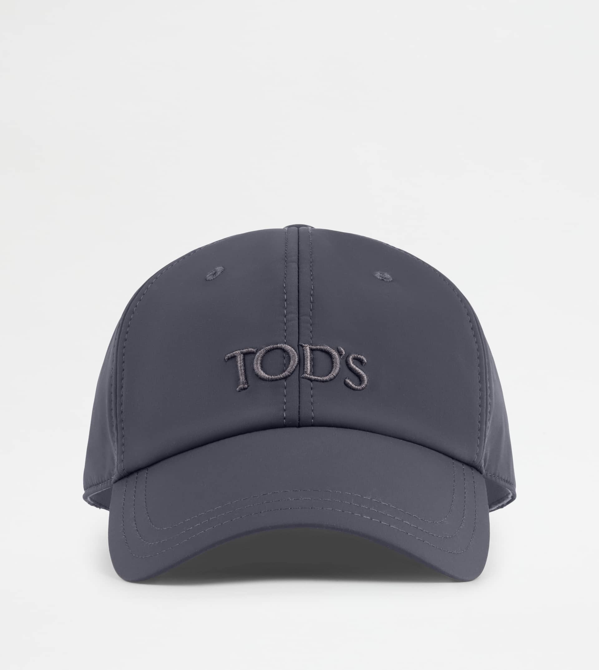 Baseball cap with Tod's logo embroidered on the front and T monogram in the back. Crafted in stretch fabric with water-repellent, windproof and breathable membrane, it is adjustable with the leather back strap. - Made in Italy - Baseball cap - Item composition: 64% polyamide, 21% polyurethane, 15% elastane, leather detailing - Lining: 100% cotton - Maintenance and care cards included