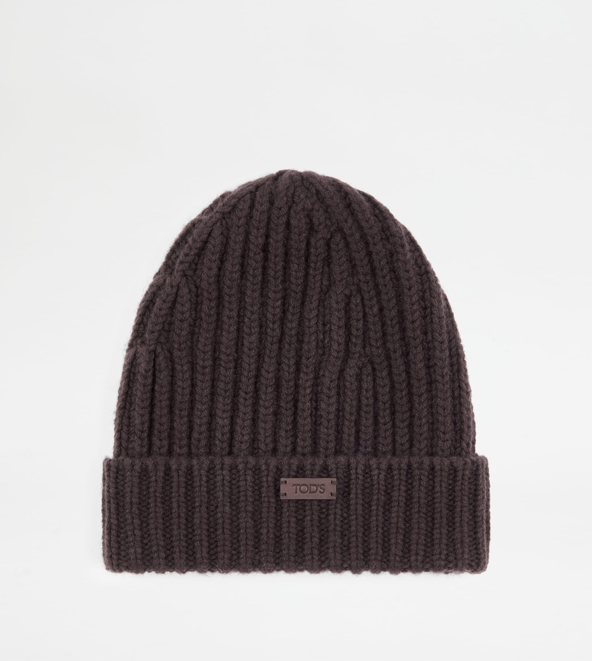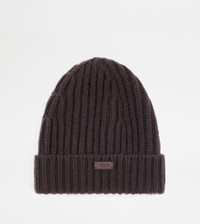 Beanie in cashmere with English rib knitting and leather Tod's tag applied on the turn-up. Soft and warm, it is a versatile and refined accessory. - Made in Italy - Ribbed beanie - Composition: 100% cashmere - Maintenance and care cards included