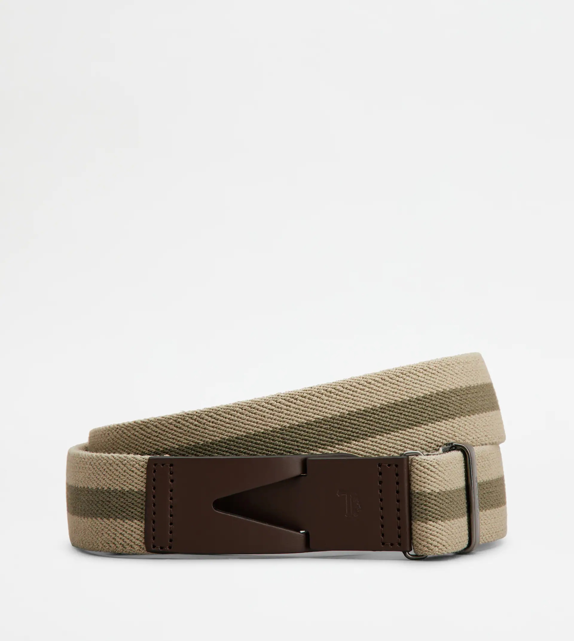 BELT IN CANVAS AND LEATHER - BEIGE, GREEN, BROWN