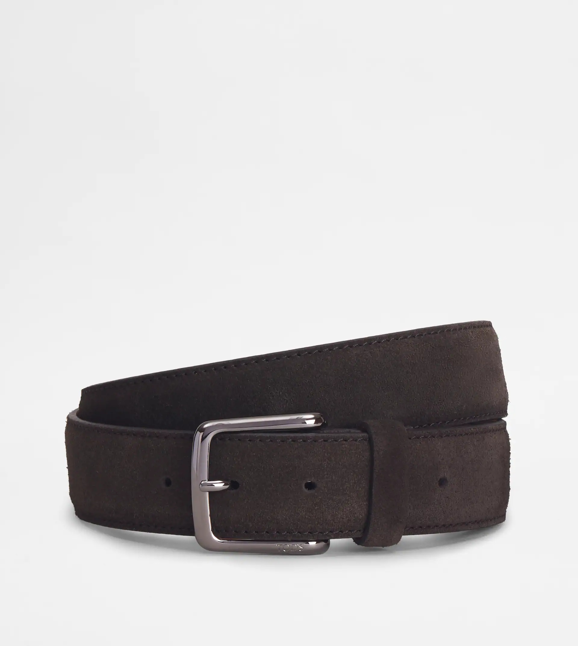 Suede belt with nickel-plated metal buckle. - Made in Italy - Men's Tod's Belt - Item crafted in suede - Nickel-plated metal buckle - Tod's logo - Belt width: 1.4 ins - Maintenance and care cards included - Branded dustbag