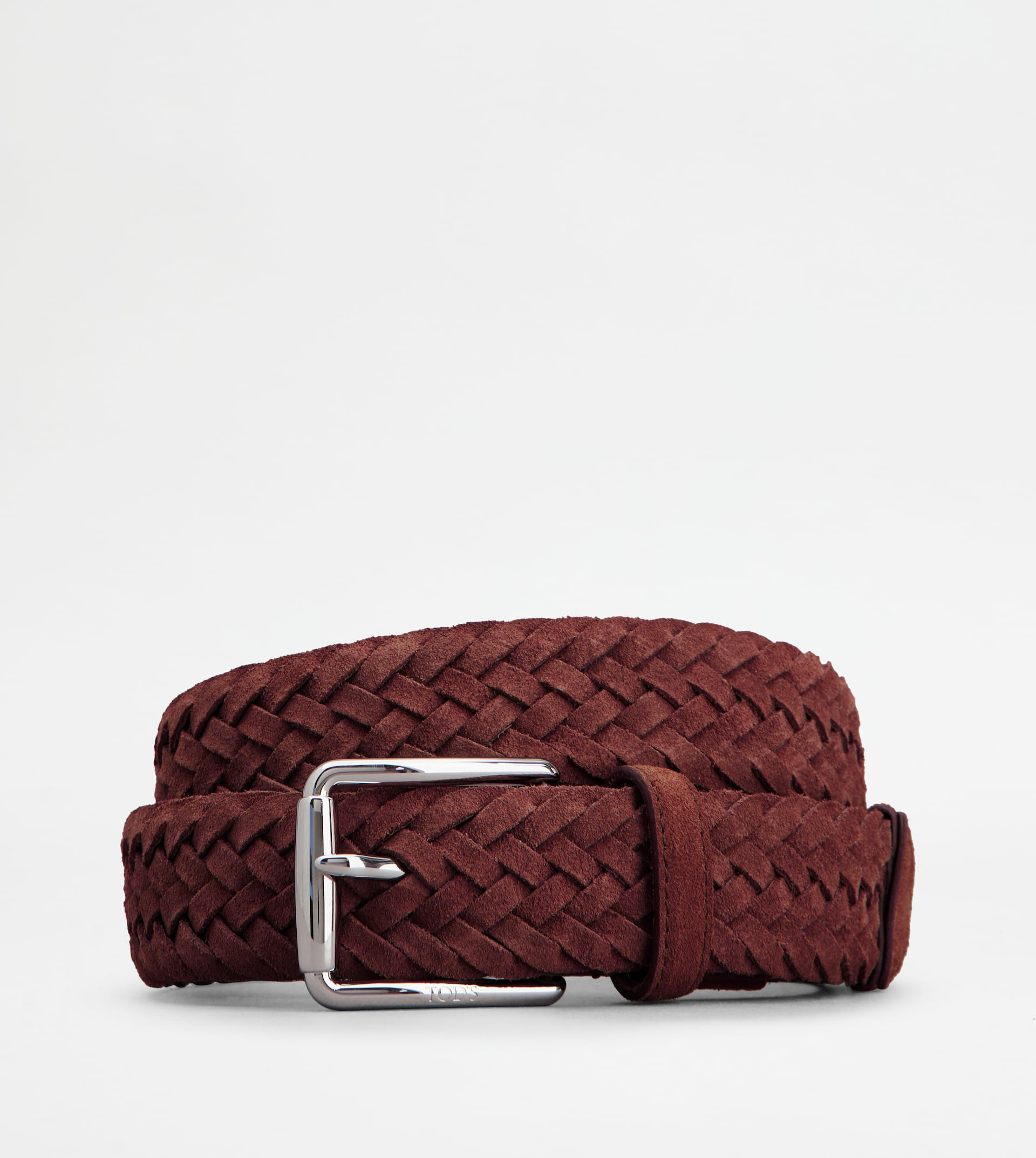 Belt in woven suede with branded metal buckle. - Made in Italy - Men's Tod's Belt - Item crafted in suede - Branded metal buckle - Technical fabric interior - Belt width: 1.4 ins - Maintenance and care cards included - Branded dustbag