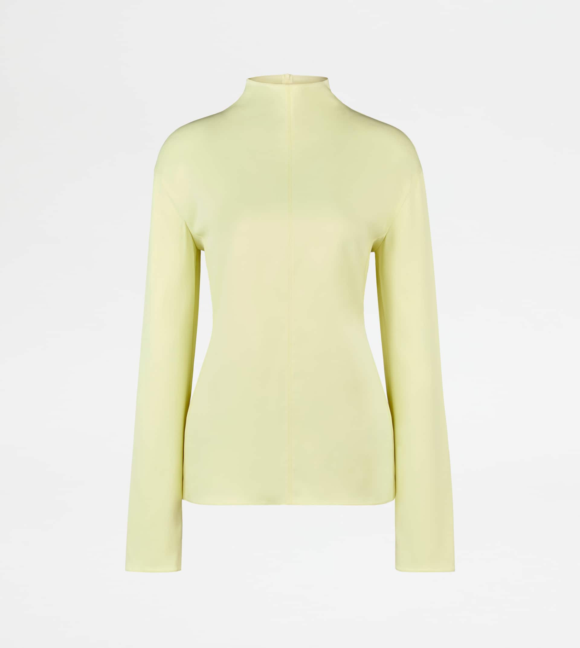 Blouse in slightly elastic fluid fabric, with central stitching and invisible zip on the back. A garment with a minimal and refined line, also perfect as an under-jacket layer. - Made in Italy - Half-neck blouse - Fitting: regular - The model is 5' 9'' and wears size S (IT) - Item composition: 61% acetate, 35% viscose, 4% elastane - Maintenance and care cards included